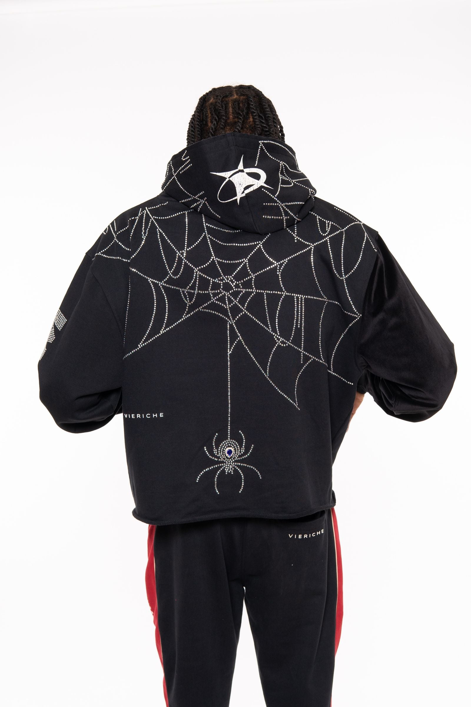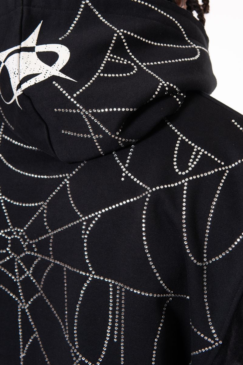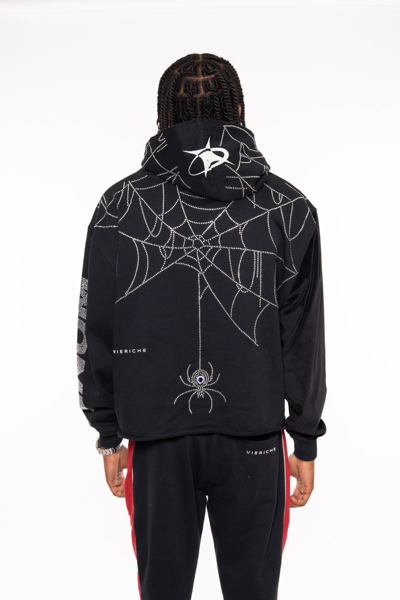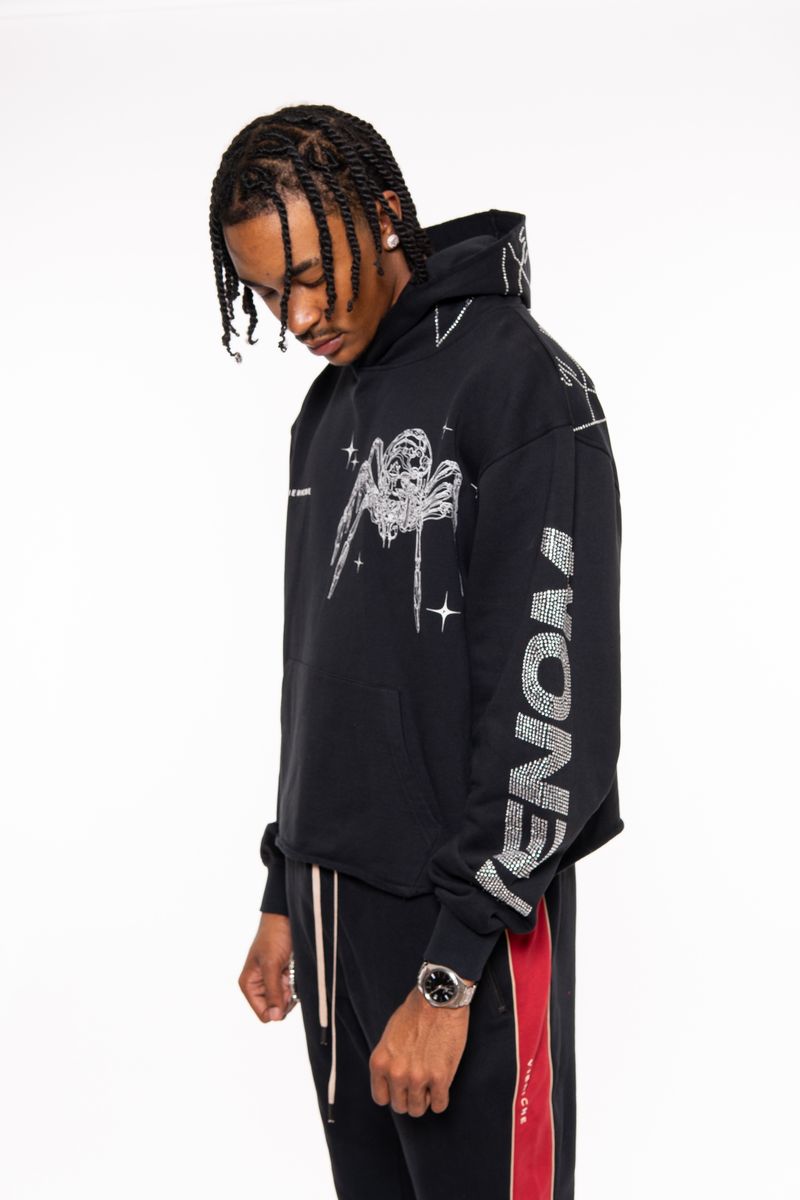 Vie Riche Venom Biker Hoodie Features fine-knit 100% Cotton French terry hooded sweatshirt with printed graphics and stones applique on sleeve and back.