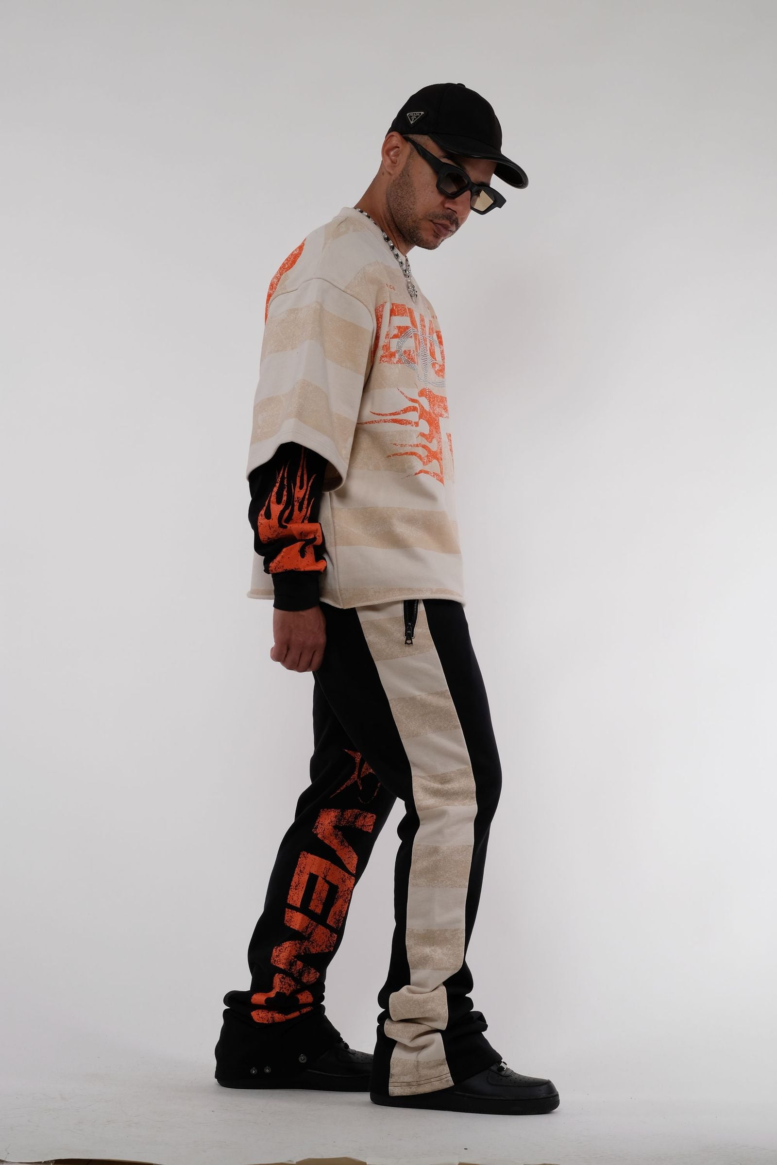 French terry layered sweatshirt (2 in 1) with printed stripes,printed graphics,